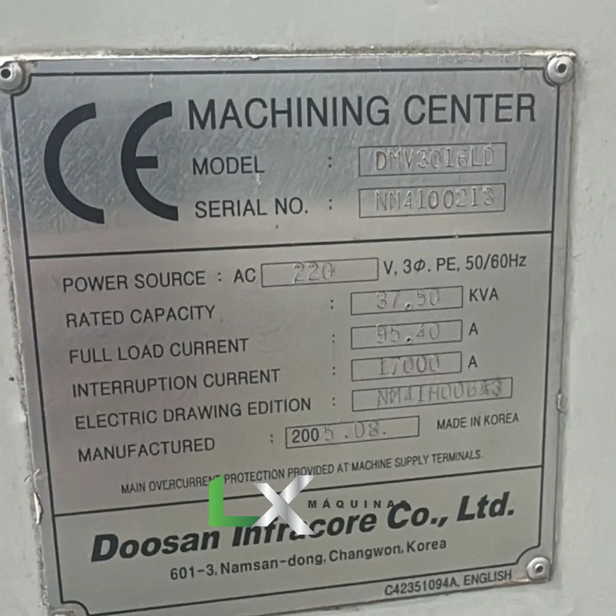 CENTRO DE USINAGEM DAEWOO DOOSAN DMV3016Ld FANUC – 2005