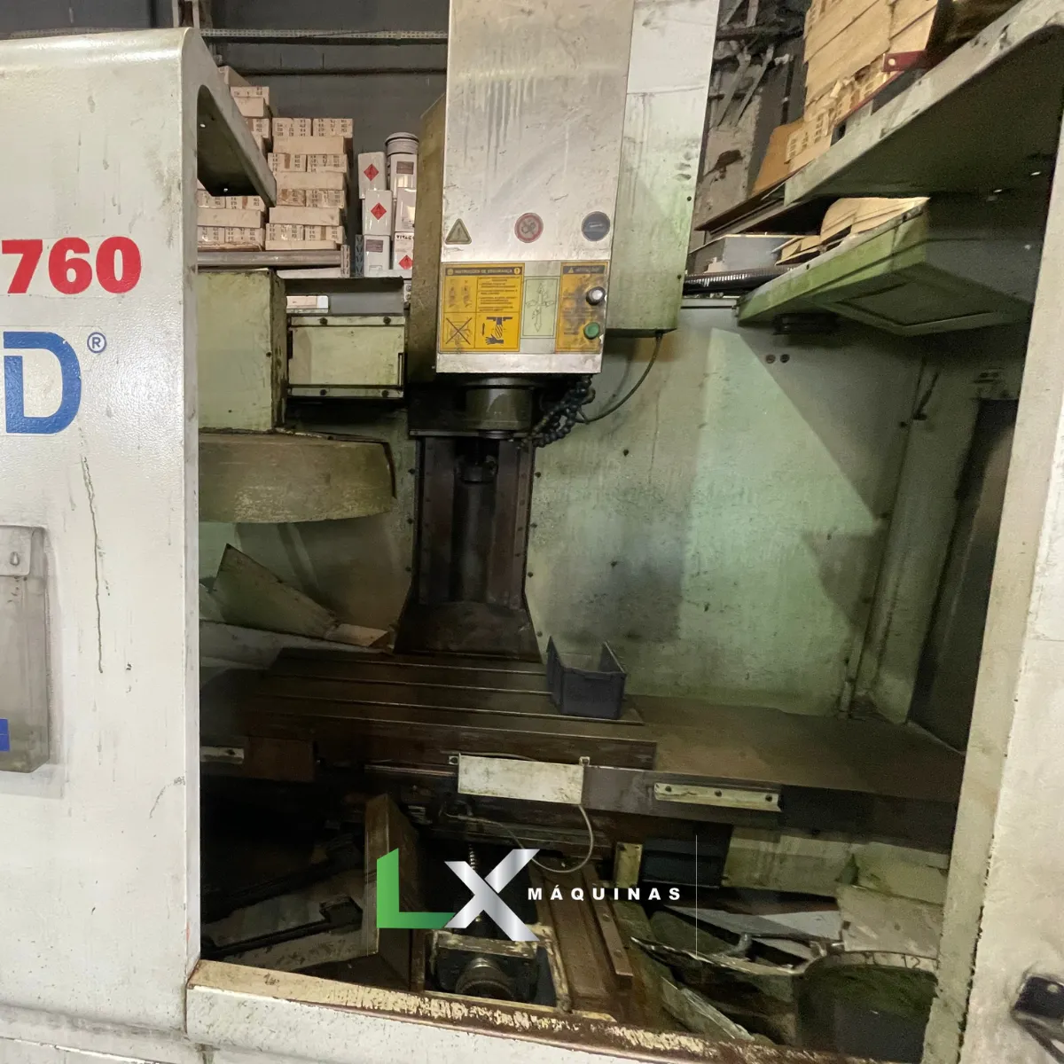 O Discovery D‑760 é um centro de usinagem vertical robusto, usado para corte, furação, rosqueamento e acabamento de peças médias com boa precisão.