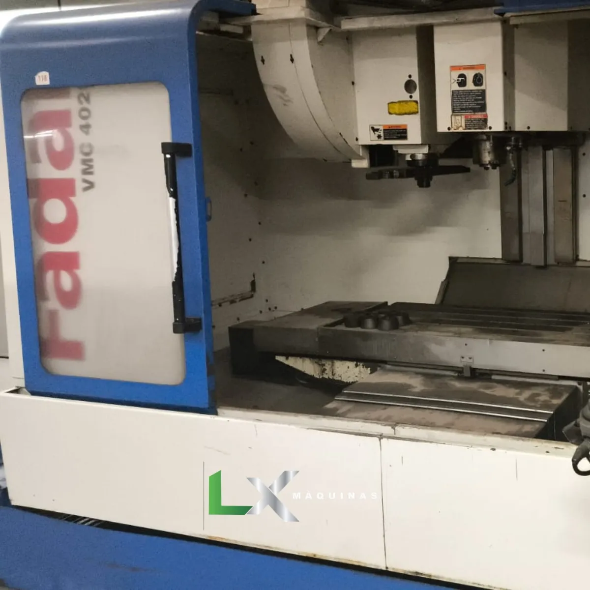 R: Centro de usinagem Fadal VMC4020 ano 2006, comando Fanuc, curso X 1000 mm, Y 505 mm, Z 460 mm, cone BT40, spindle 8.000 RPM, ATC 16 posições e transportador de cavacos — ideal para peças longas e produção em série.