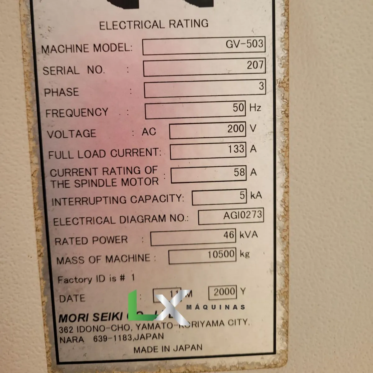 CENTRO DE USINAGEM MORI SEIKI GV503 DUPLO PALLET – 2000
