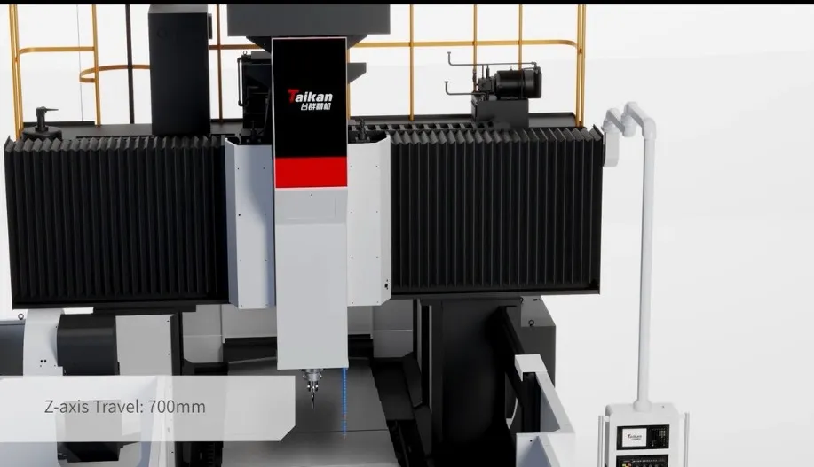 - Sistema de Balanceamento do Eixo Z: Utiliza pressão de nitrogênio para contrabalançar o peso da caixa do fuso e do carneiro, reduzindo a carga sobre o servomotor. Isso minimiza a vibração e a deformação, melhorando a precisão e a estabilidade da usinagem. Além disso, reduz o desgaste mecânico, prolongando a vida útil da máquina.