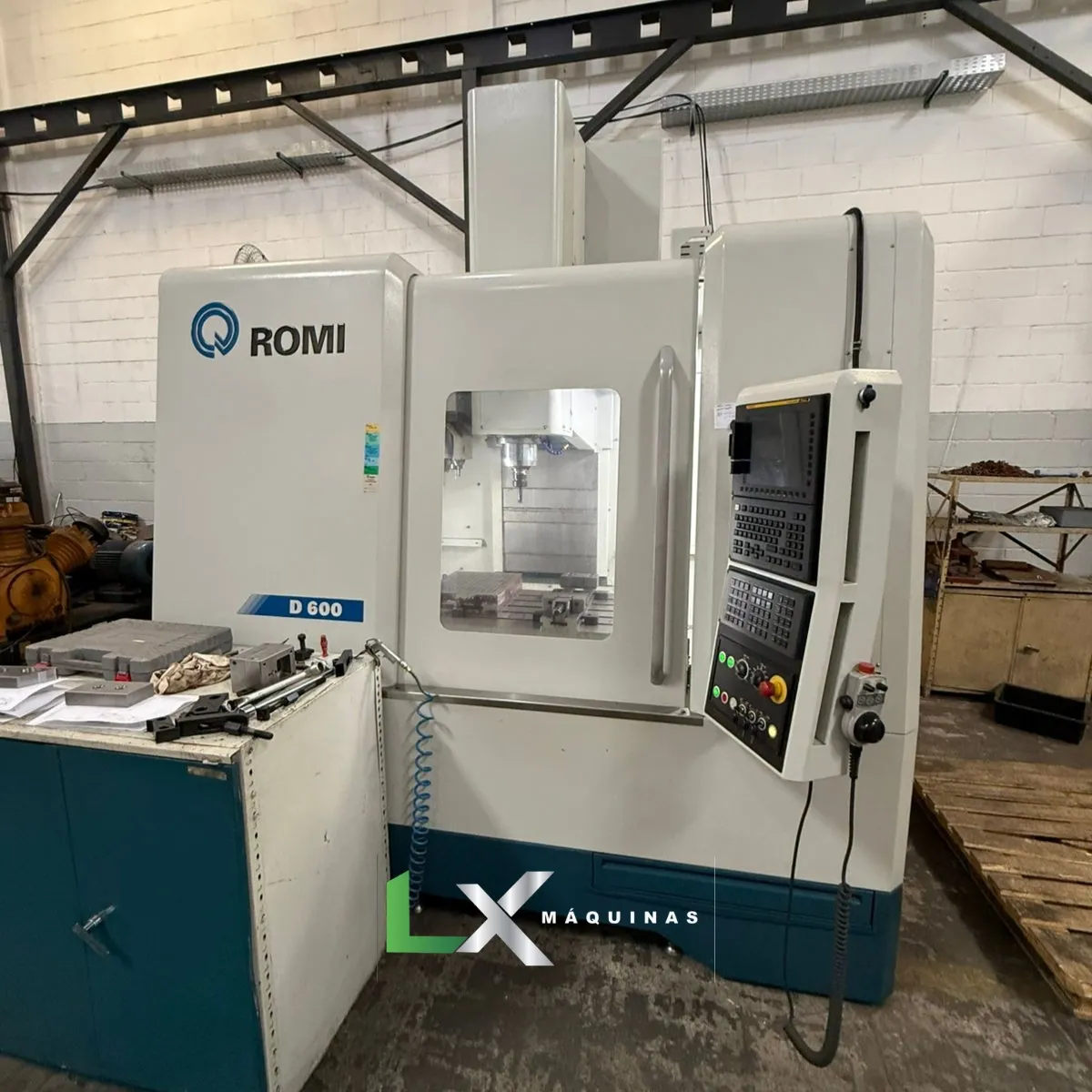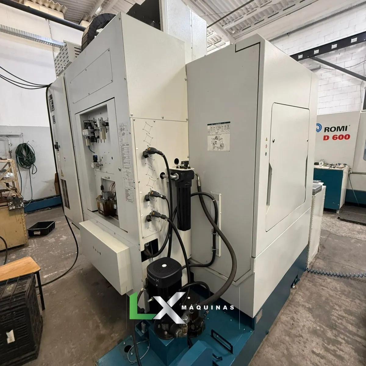 Resposta: É um centro de usinagem CNC vertical da marca Romi, modelo D600 (ano 2022), equipado com comando Fanuc Oi-MF Plus, ideal para aplicações de usinagem de média a grande porte com alta precisão.