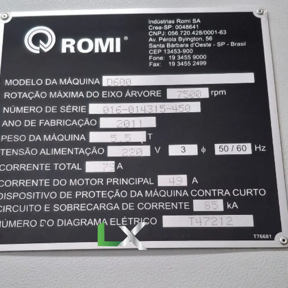 ROTAÇÃO SPINDLE: 7.500 RPM