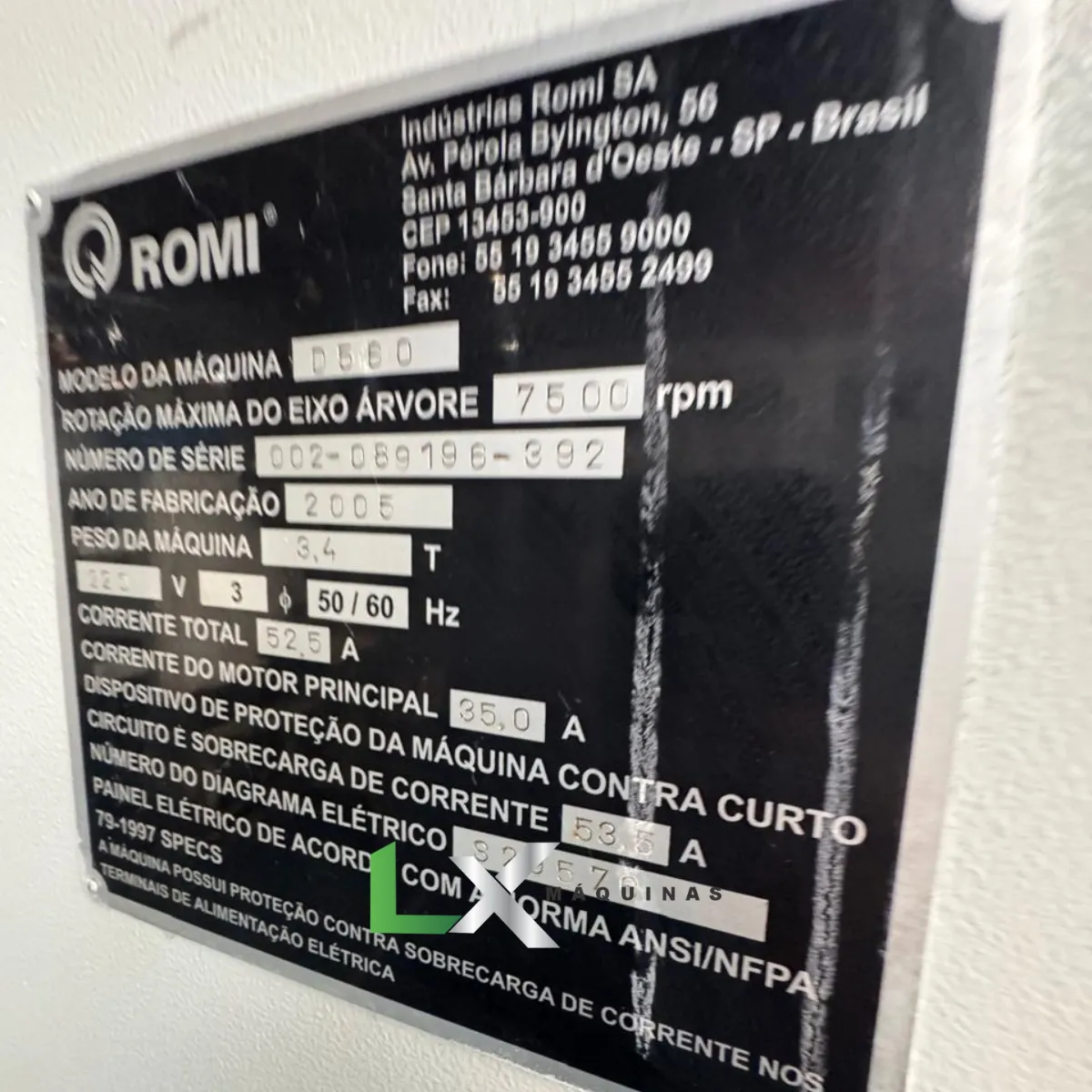 CENTRO DE USINAGEM VERTICAL ROMI DISCOVERY 560 – FANUC – 2005
