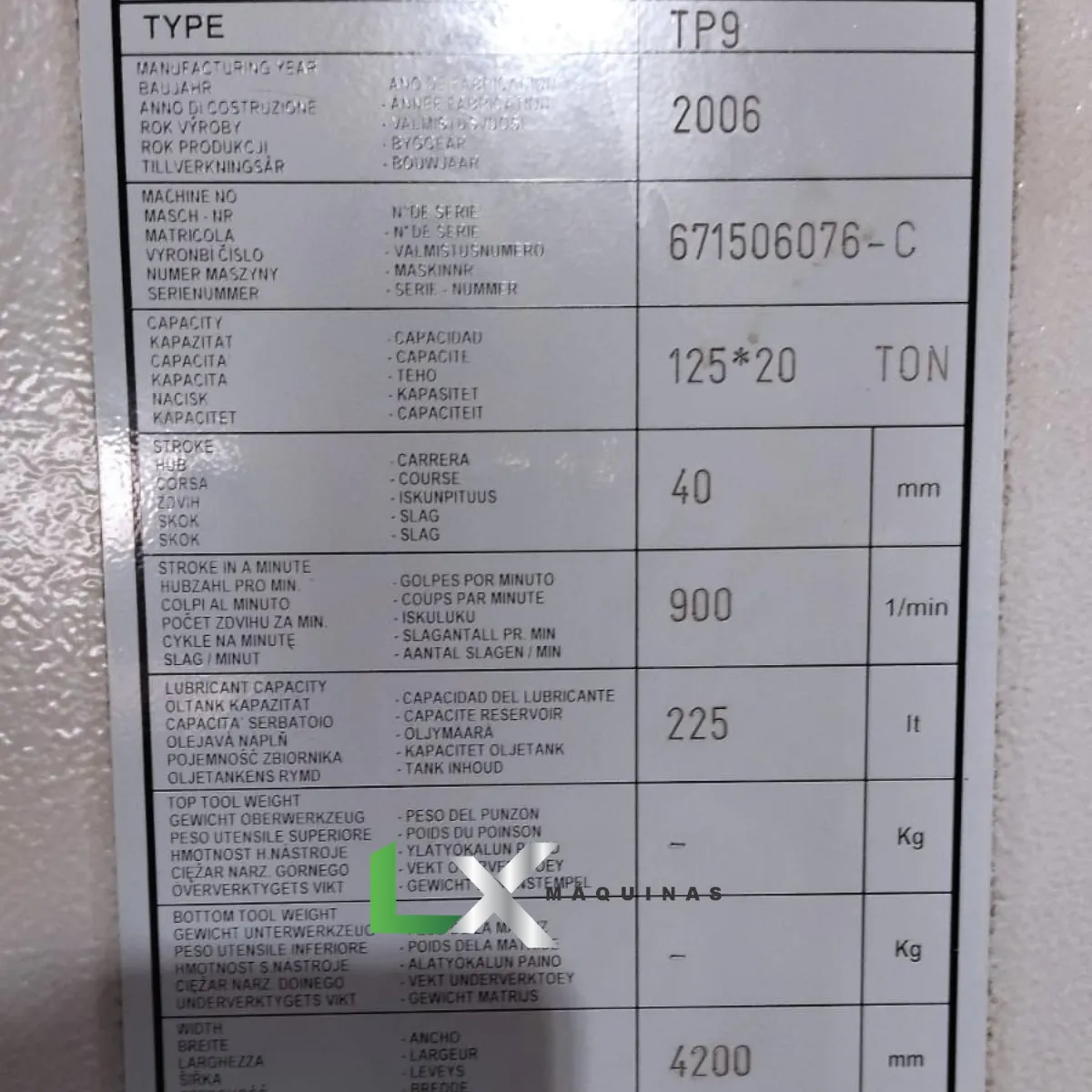 PUNCIONADEIRA CNC DURMA TP9 – 125X20 TON – SIEMENS