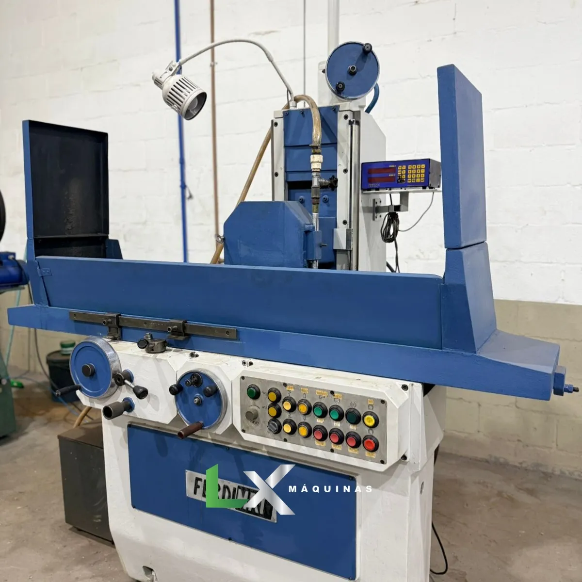 Curso X 600 mm, Y 280 mm, Z 250 mm; rebolo novo; digital no eixo Y; balanceador e adestrador de rebolo; elétrica nova; sem folgas — ideal para acabamento e precisão.