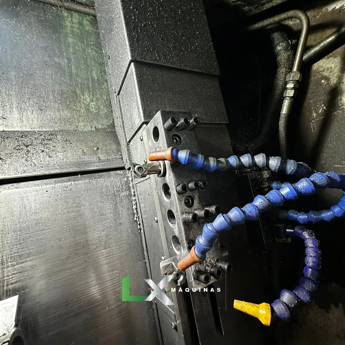 O alimentador está incluso e qual a vantagem? R: Sim — o anúncio indica “com alimentador”. O alimentador permite o carregamento automático de barras, aumentando a produtividade, reduzindo o tempo de configuração e possibilitando a produção contínua e séries maiores com menor mão de obra.
