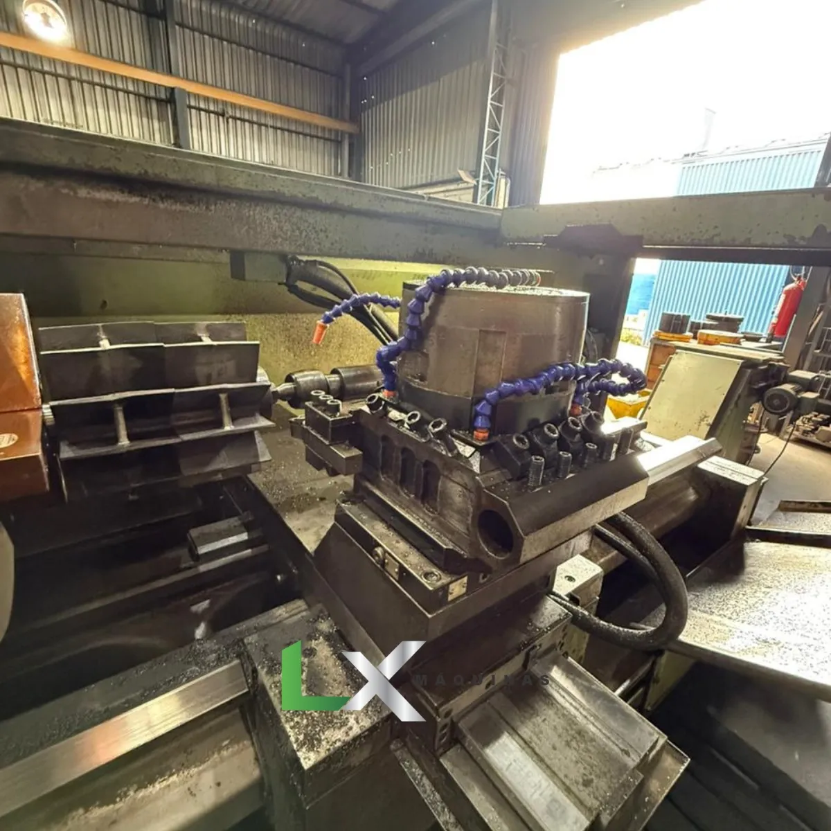 - Quais são as principais especificações do ROMI ECN40 II? R: Diâmetro torneável 600 mm, entre pontas 1500 mm, placa mecânica, torre de 4 posições e transportador de cavacos.