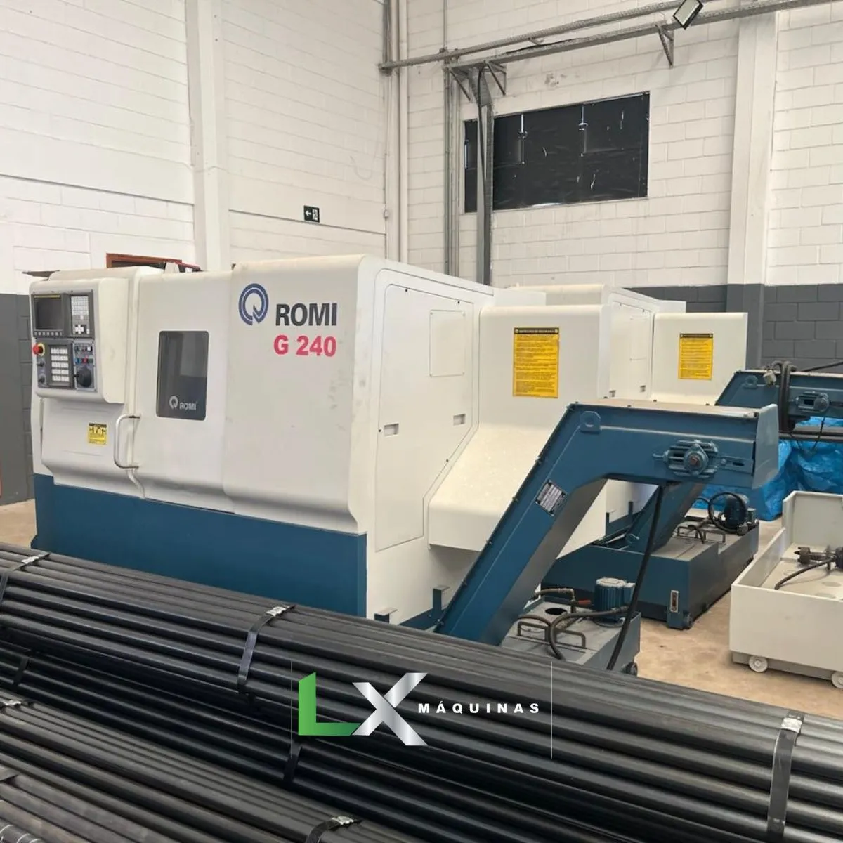 É um centro de torneamento CNC horizontal de alta precisão, fabricado pela Romi, equipado com comando Fanuc. É utilizado para usinagem automatizada de peças cilíndricas, permitindo produção repetitiva com alta qualidade.