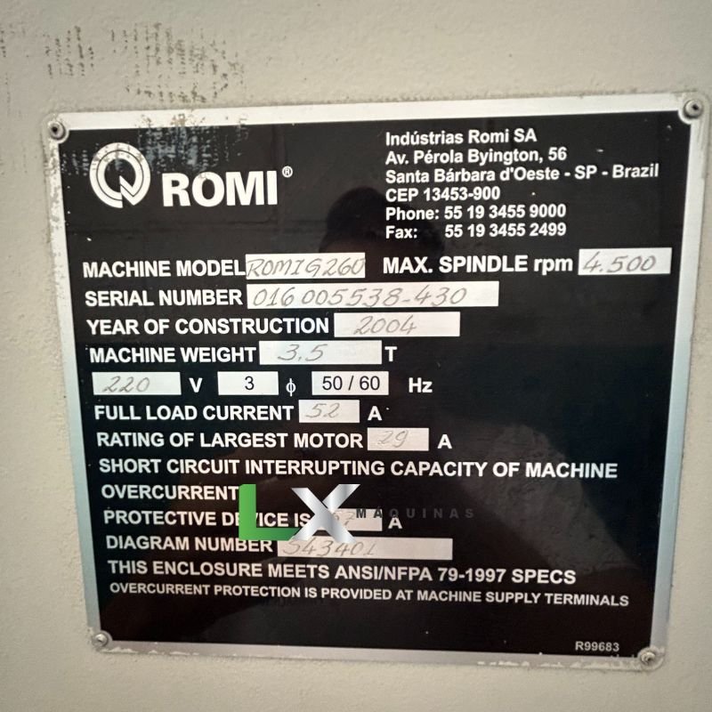CENTRO DE TORNEAMENTO ROMI GL 240M – ANO 2011